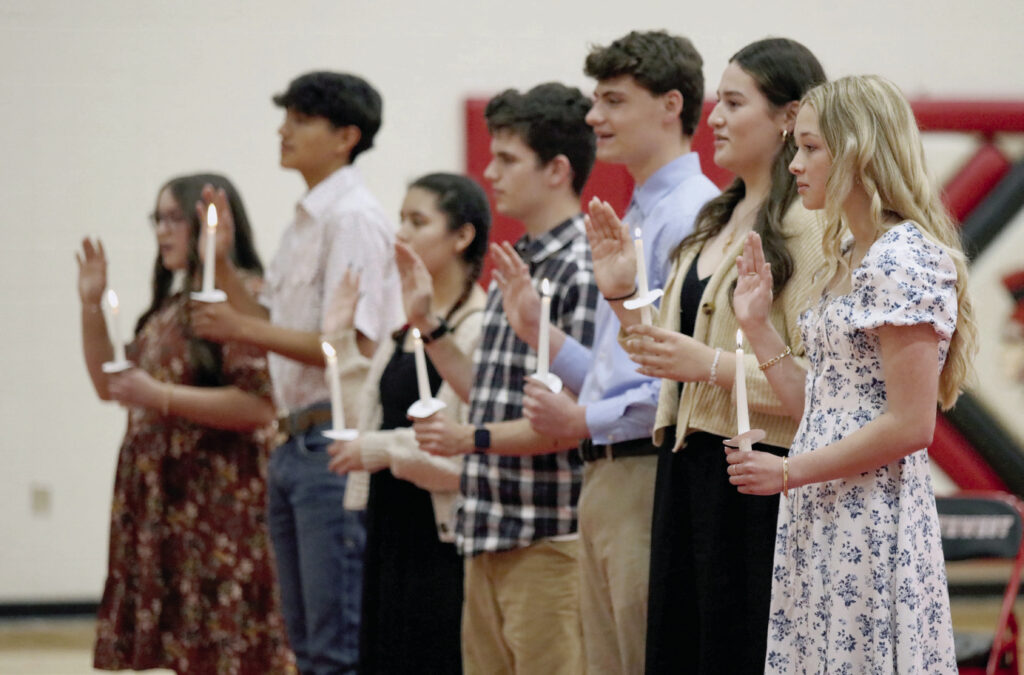 Caleb Ayer, Southwest National Honor Society, lights the candle of knowledge at the annual induction ceremony on April 3. Kyle Troutman/[email protected]