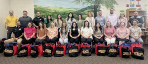 Matt Barlow readies his son Jett’s fishing pole during Kids Fishing Day at Roaring River State Park on Saturday. Barlow says he has been traveling to Roaring River, from Hoisington, Kan., since he was a child. Sheila Harris/[email protected]