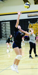 Attending Kids Fishing Day at Roaring River State Park is a long-standing tradition for Lisa Lemonier, seated at right, and her family, Kaylen, Carter and Kyla Blair, and Dawson Webb. The family is from Chester, Ark. Sheila Harris/[email protected]Kinsley Morgan, front, put serious effort into fishing, while her cousin, Case Schroeder, preferred to admire the water during Kids’ Fishing Day at Roaring River State Park on Saturday. Sheila Harris/sheilaharrisads@ gmail.com