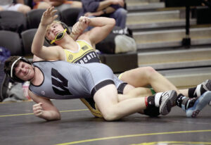 Olivia Hermansen, right, celebrates winning the championship round of “Head, Shoulders, Knees, and Cup” against Evan Butler at Cassville High School’s Christmas assembly on Thursday. The game was led by Kiersten Fare, middle. Kyle Troutman/[email protected]From left, Brandt Reuter, Ben Reuter and Claire Reuter perform “Sleigh Ride” in a “Masked Singer” game at the Cassville High School Christmas assembly on Thursday. Kyle Troutman/[email protected]Tyra Sturgell, left, gets into the front of a table during a game at Cassville High School’s Christmas assembly on Thursday. Kyle Troutman/[email protected]Kalee Lowe celebrates winning first place in the schoolwide ugly sweater contest at Cassville High School’s Christmas assembly on Thursday. Kyle Troutman/ ktroutman@ cassville- democrat. comThe Cassville cheer squad performs at the high school’s Christmas assembly on Thursday. Kyle Troutman/[email protected]Tristan Thompson, front right, launches at Chance Freed with a balloon the pair had to pop during a game at Cassville High School’s Christmas assembly on Thursday. In the background, Zach Myers and Van Thang had just popped their balloon, allowing Myers to sprint back across the gym floor to victory. Kyle Troutman/ktroutman@cassville-democrat. com