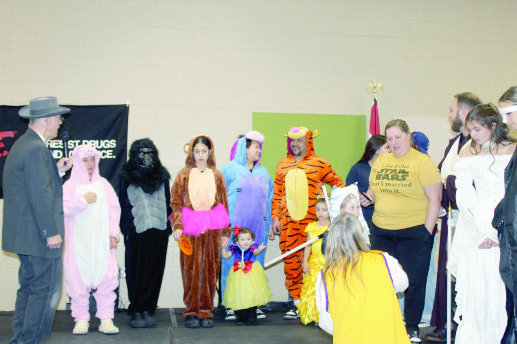More than two dozen contestants participated in the annual Monett Halloween costume contest, hosted for the 11th year by the Monett Lions Club. Serving as judges at the Monett Intermediate School cafeteria were Cassie Villandry, Lauren Weston, and Dorie Minton. The Lions provided cash prizes for the top three in seven categories, and candy for all participants. Murray Bishoff served as master of ceremonies. Taking top honors were Yviana Heredia as Snow White in age 1 and under; Yalitza Alvarado as a corpse bride in ages 2-3; Everleign Crim as a snail in ages 4-5; Ethan Brite as Travis Kelse in ages 6-8; Yvalyn Valenciano as a Disney gorilla in ages 9-12; Yvette Valenciano as Maron from Dragonball Z in ages 13 and up; and a family group as the Dragonball Z characters for the group. Photos and results from the contest were not available at presstime for the November issue of Monett Monthly.