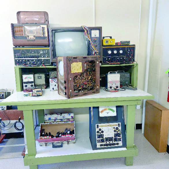 The outdated devices show the different methods and materials used throughout time to transmit images and sounds to our homes.