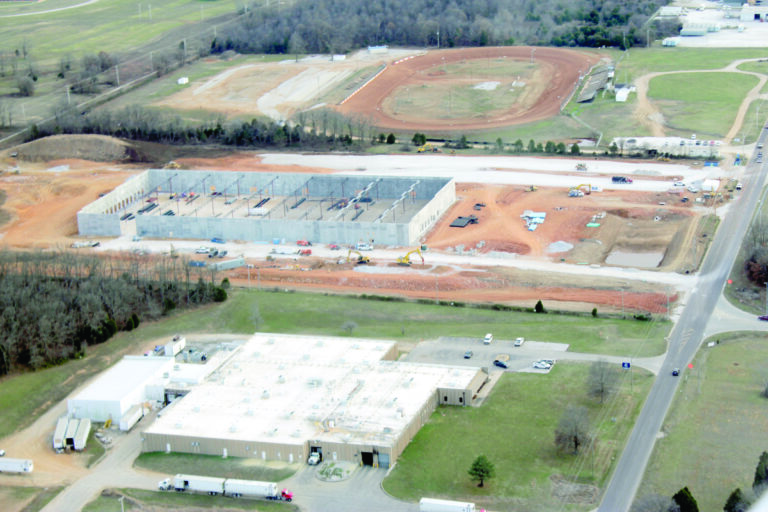 Here’s a recent view of the Amazon warehouse under construction in Monett. At right is Chapell Drive. At bottom is the Tyson Foods hatchery. At top is the Monett Speedway. The 119,152 square foot, $22.2 million facility is expected to begin operations in June. Murray Bishoff/Special to the Monett Monthly