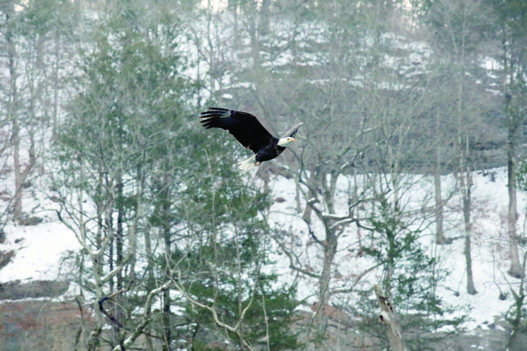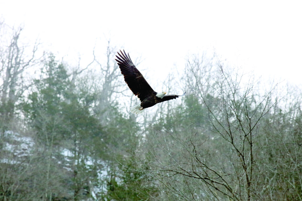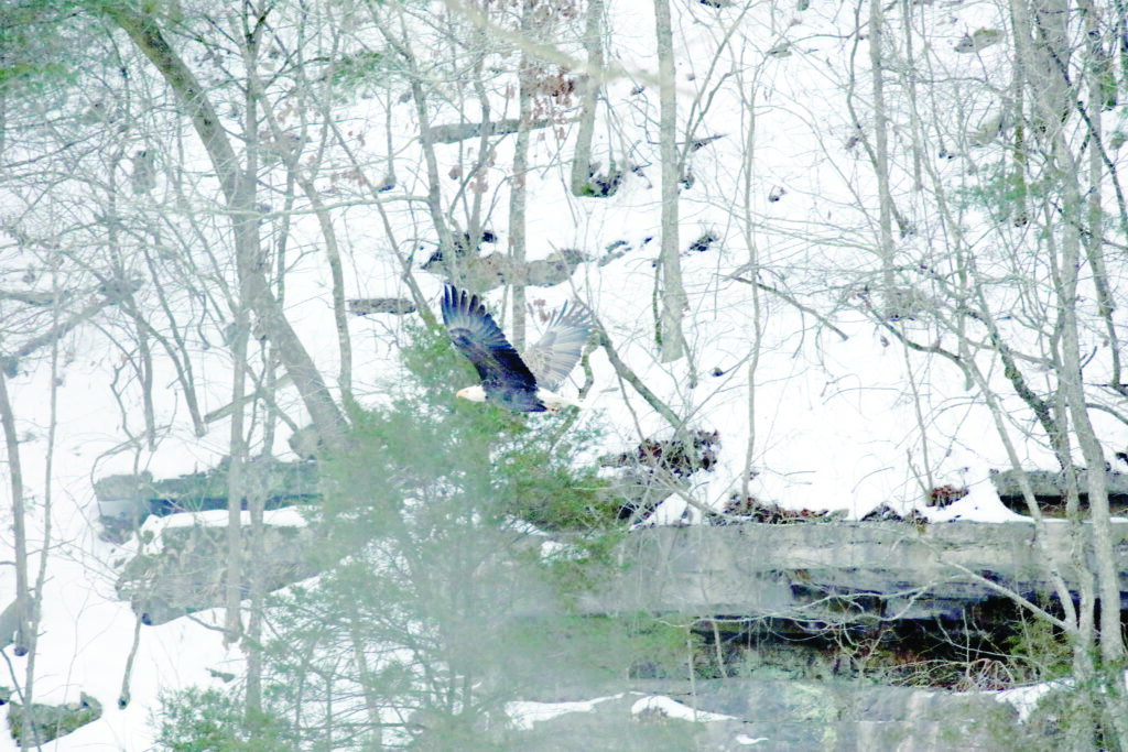 Bald eagles wintering near Roaring River State Park made a display of flight on Thursday. The best time to spot eagles in the park is early mornings, before 9 a.m., near campground three or by the Roaring River Hatchery. Kyle Troutman/[email protected]