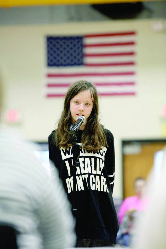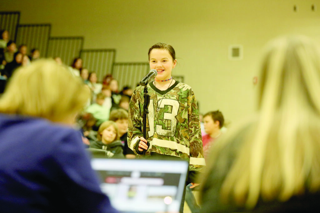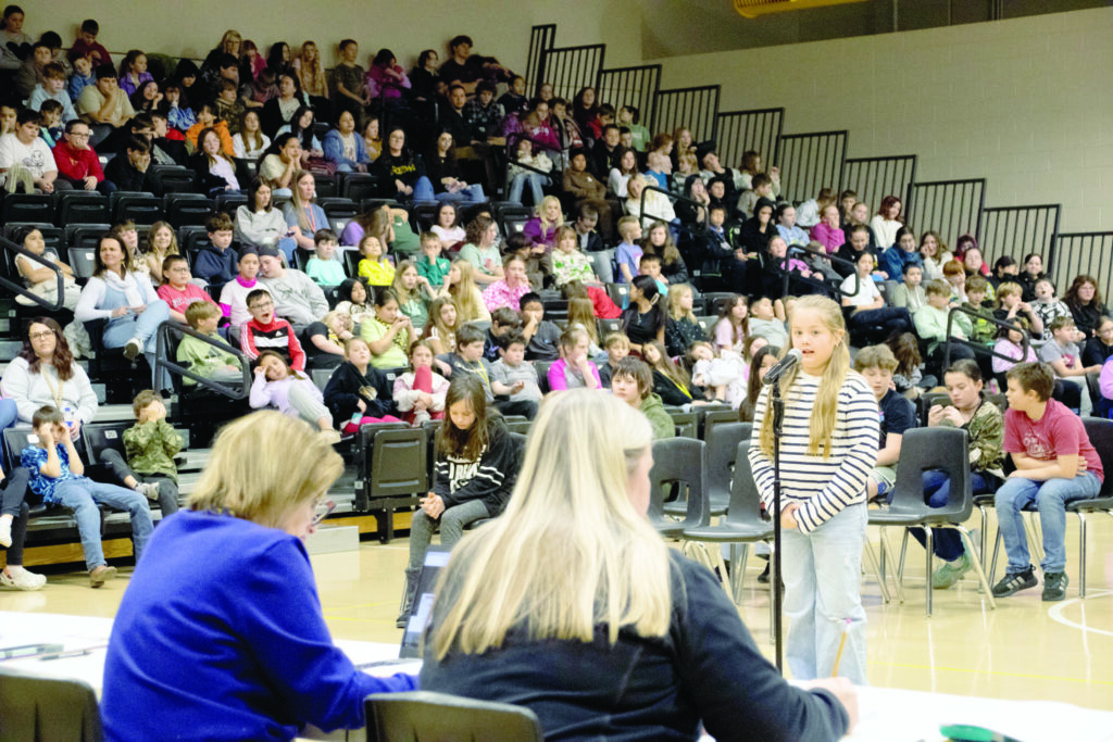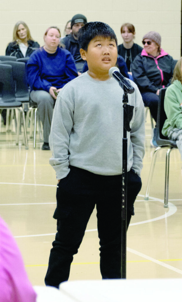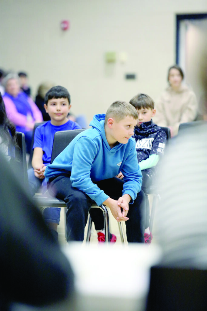 Justus Greek, right, and Avah Isom, middle, high five Mark Jenkins after he spelled a word correctly in the Cassville Intermediate Spelling Bee on Feb. 4. Kyle Troutman/[email protected] Avah Isom smiles a she spells in the Cassville Intermediate Spelling Bee on Feb. 4. Kyle Troutman/[email protected] Van Dawt Hleithawng carefully spells a word in the Cassville Intermediate Spelling Bee on Feb. 4. Gwendylan Harmon/Special to the Cassville Democrat Van Hu puts thought into spelling a word in the Cassville Intermediate Spelling Bee on Feb. 4. Gwendylan Harmon/Special to the Cassville Democrat Kannon Scott watched intently as his fellow classmates competed in the Cassville Intermediate Spelling Bee on Feb. 4. Kyle Troutman/[email protected] Avery Greek spells a word in the Cassville Intermediate Spelling Bee on Feb. 4 as her peers look on. Gwendylan Harmon/Special to the Cassville Democrat Isabella Martinez correctly spells a word in the Cassville Intermediate Spelling Bee on Feb. 4. Martinez, a fourth-grade student, took second place in the contest. Kyle Troutman/[email protected] Kyle Barrientos spells a word in the Cassville Intermediate Spelling Bee on Feb. 4. Kyle Troutman/[email protected]