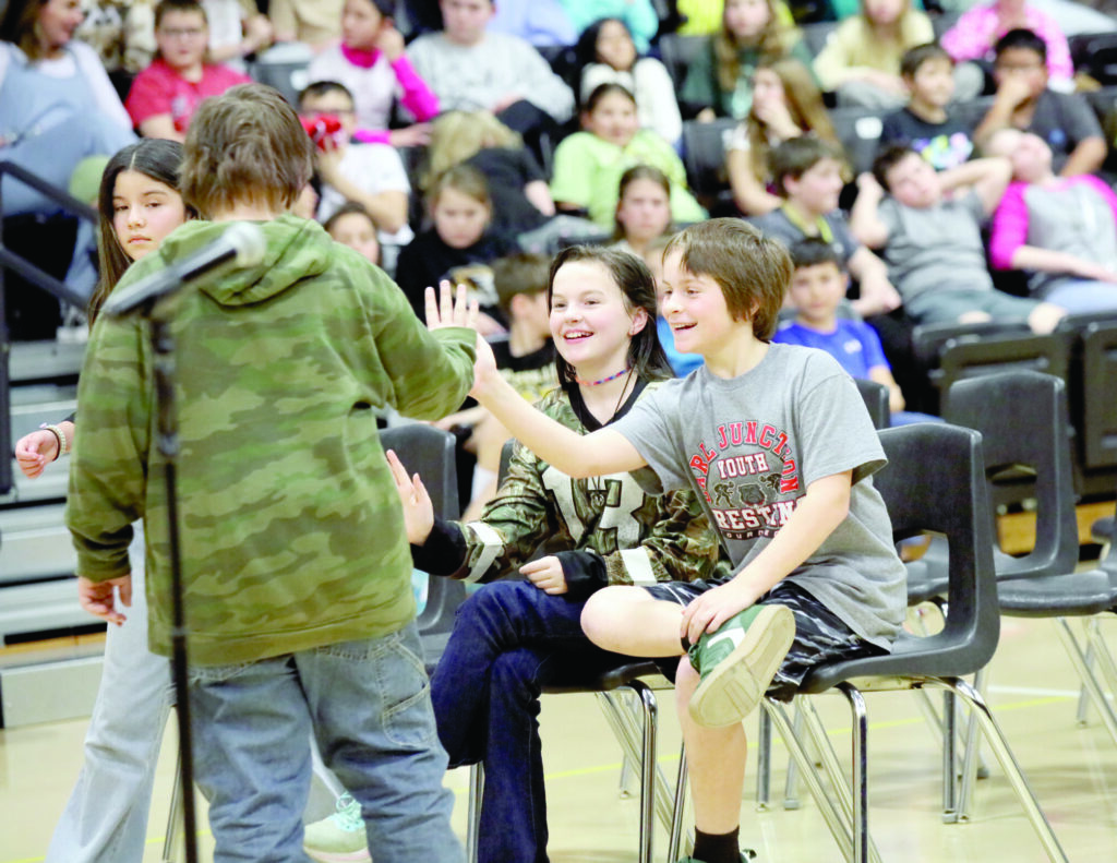 On Feb. 4, fourth- and fifth-grade classroom spelling bee winners competed in the Cassville Intermediate Spelling Bee. Fifth-grade student Mark Jenkins is pictured sighing in relief after taking first place by correctly spelling "hammerhead." He will compete in the Joplin Globe Spelling Bee on March 13. Fourth-grade student Isabella Martinez finished in second place and will serve as Cassville's alternate at the Joplin Spelling Bee. Jenkins is the son of Tara Pointer and Mark Jenkins. Martinez is the daughter of Yolanda Barrientos. Kyle Troutman/[email protected]
