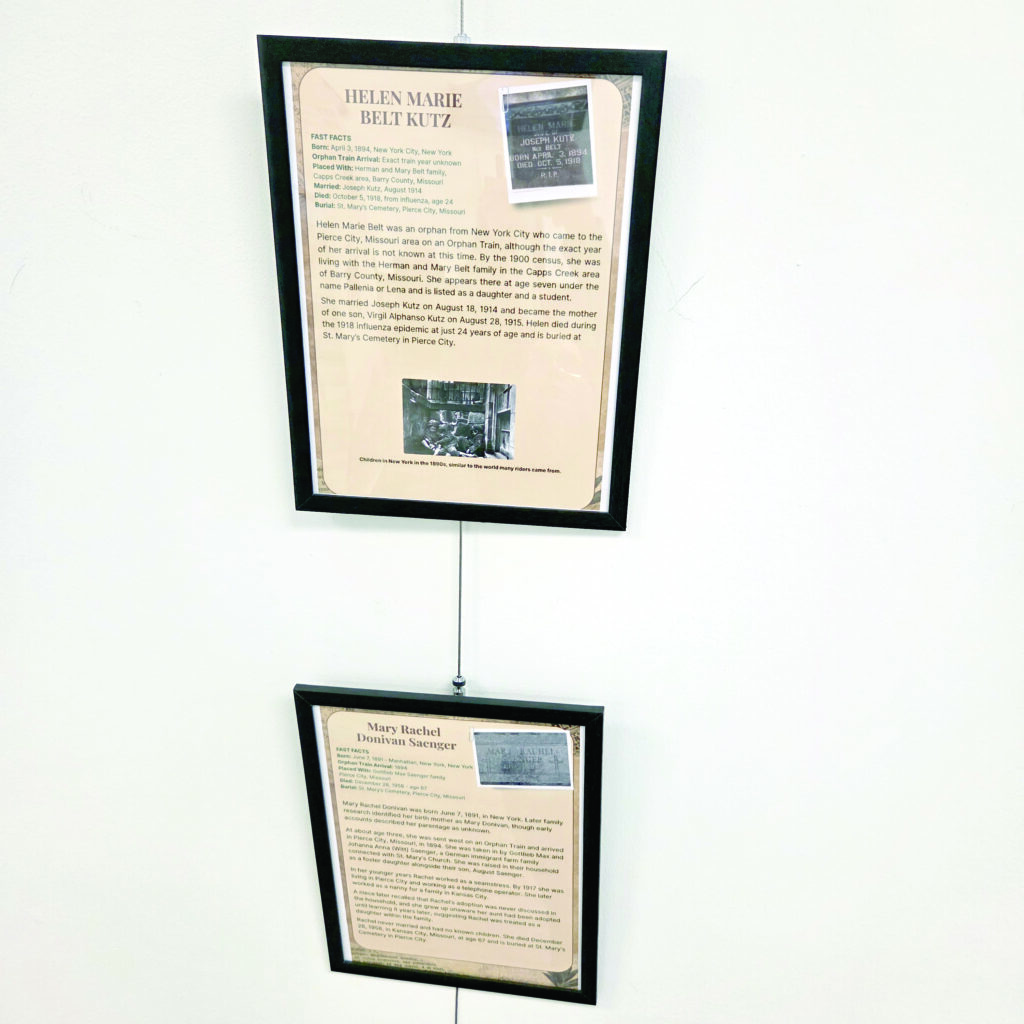 The stories of local Orphan Train arrivals are displayed as well as several family owned items from their local descendants, showing the local connections to this part of American history.