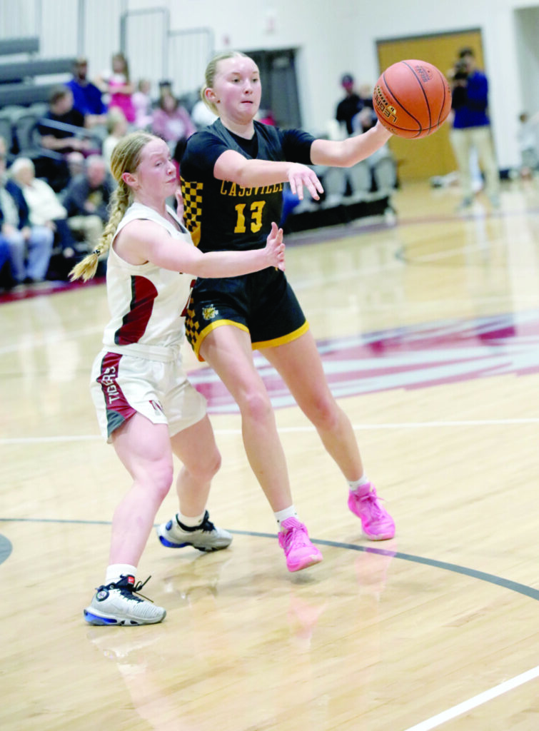 Nevada continued the trend in the second quarter, going on a 6-0 run after scoring on a pair of steals. Cassville made a 6-0 run of its own to end the first half, with Audrey Kennedy hitting a trey and Holycross driving and converting the and-1 to go into the locker room down 23-17.