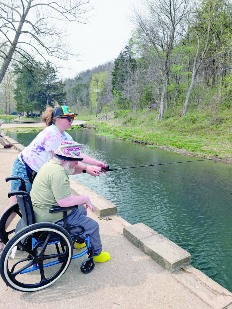 About 15 residents of Aspire Senior Living Roaring River, in Cassville, were treated to an outing to Roaring River State Park on March 31, where they enjoyed fishing and a picnic lunch. According to Aspire activities director, Lindsay Harris, they were accompanied to the park by six employees of the residential care facility. The Missouri Department of Conservations’ (MDC) “First Hole” program provided fishing license and tag-waivers for the nursing home residents, plus the poles and tackle used for fishing. According to Roaring River Hatchery Manager, Brad Farwell, the First Hole program is available for special groups, including children ages 15-and-under, people with disabilities, veterans, and residents of senior living facilities. For more information about the program, people may contact Farwell at 417-847-2430, extension 1932. Contributed photos