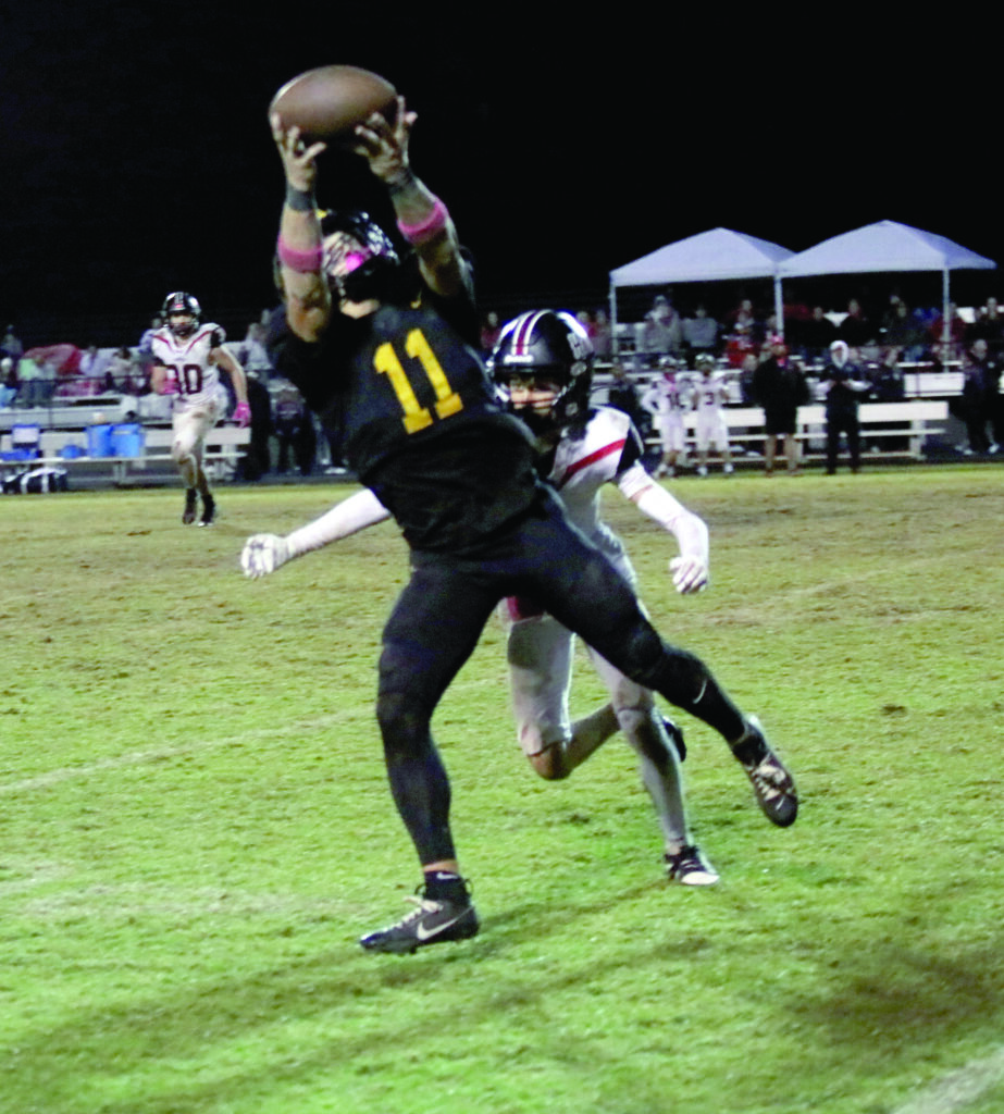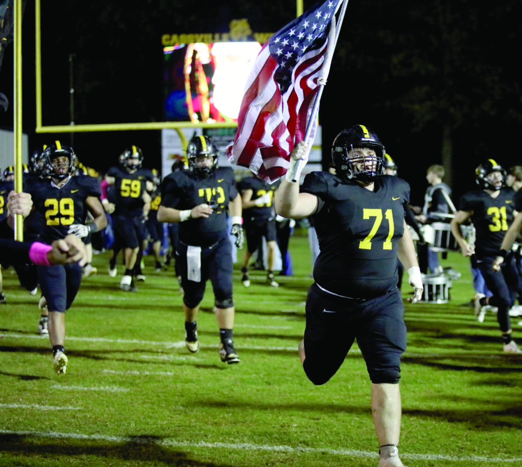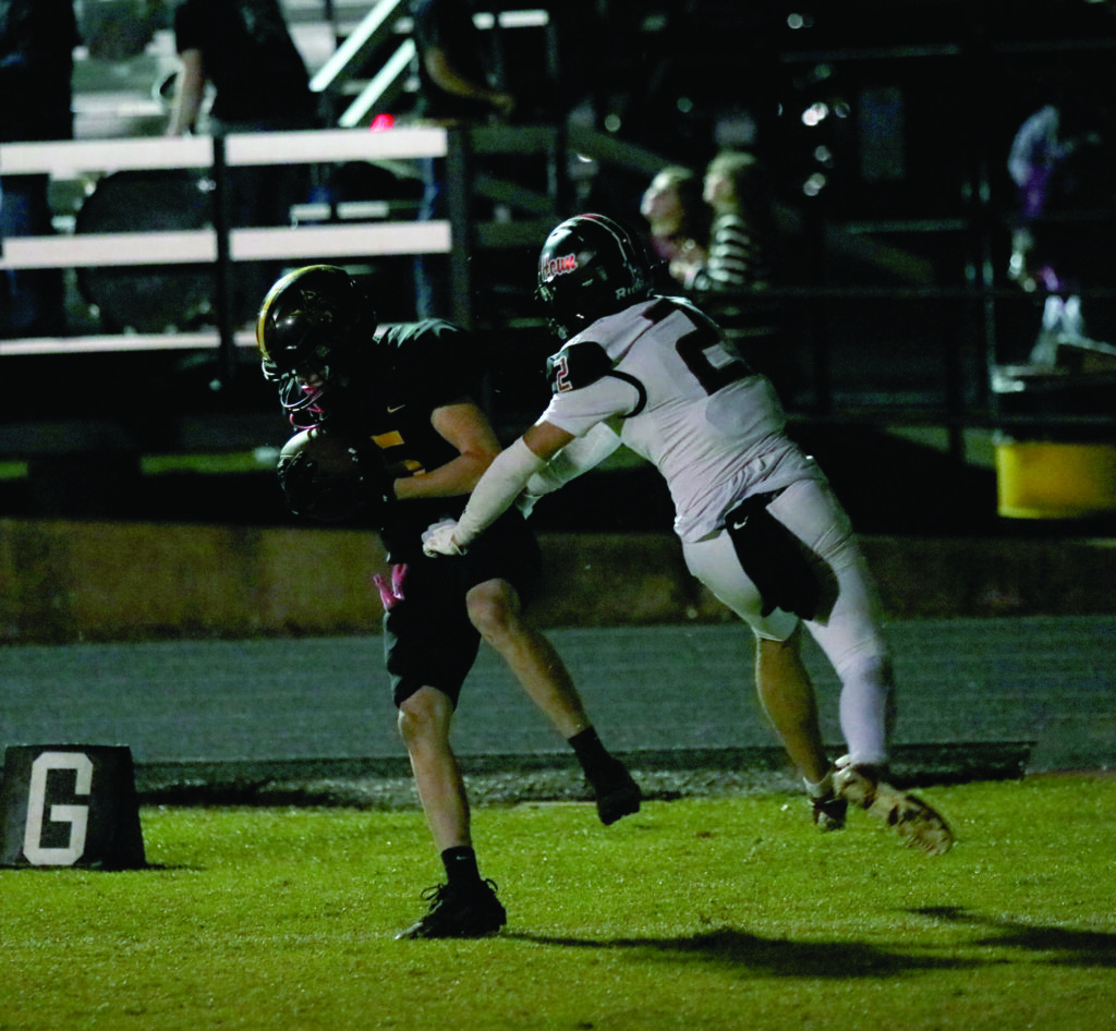 Kyle Troutman/ktroutman@cassville-democrat.com after a penalty and fumble recovery that forced a punt. Cassville’s defense, led by Tristan Thompson, held Aurora in check again before Stearns took off on a 34-yard touchdown run with 3:06 left in the third quarter to extend the lead to 35-7.