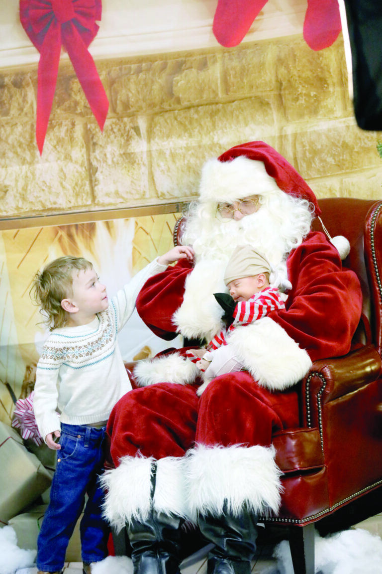 Rowan Arndt, who turns 3 soon, and Roper Arndt, 2 months, both of Cassville, took a photo with Santa on Friday at the third annual Cassville Community Christmas, organized by the Cassville Community Collective.